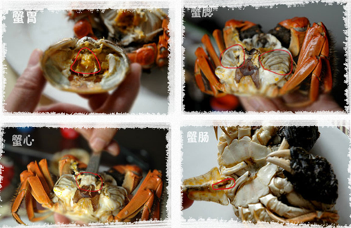 1、蟹胃、蟹腸、蟹腮、蟹心不宜吃,其中帶有細(xì)菌、病毒等致病微生物;