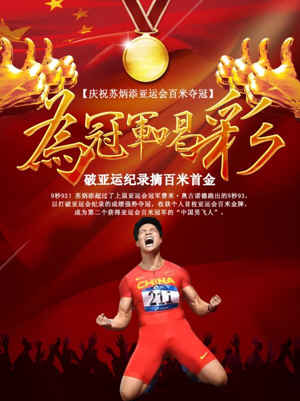 "這是我十多年運(yùn)動(dòng)員生涯中拿到的第一枚金牌。"沖過(guò)線(xiàn)后的蘇炳添接過(guò)國(guó)旗,向場(chǎng)邊奔跑。此前在省運(yùn)會(huì)、全運(yùn)會(huì)、亞運(yùn)會(huì)等綜合性運(yùn)動(dòng)會(huì)中都未能登頂?shù)奶K炳添,終于收獲了一枚個(gè)人項(xiàng)目金牌。