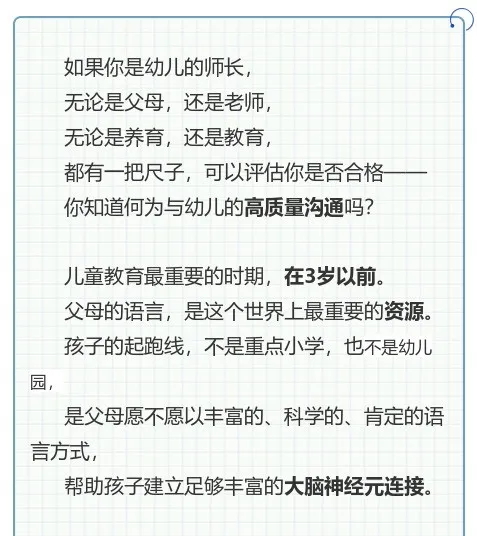 當(dāng)孩子走進(jìn)幼兒園,屬于他的0~3歲已經(jīng)一去不返,孩子與孩子之間,認(rèn)知能力、語(yǔ)言能力、情感與自我控制能力已經(jīng)千差萬(wàn)別,那么,當(dāng)下他人生又一個(gè)重要發(fā)展階段的3~6歲,能不能住把握時(shí)機(jī),得到更全面的成長(zhǎng)成就?